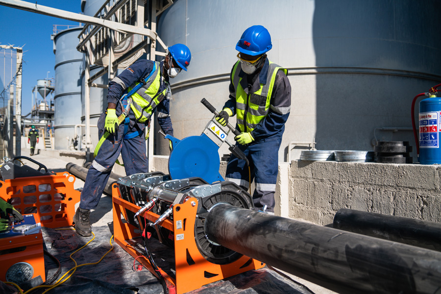 • High pressure HDPE fusion welding from 75-400mm diameter pipe